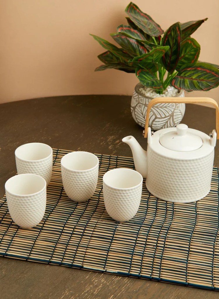 White Ribbed Tea Set